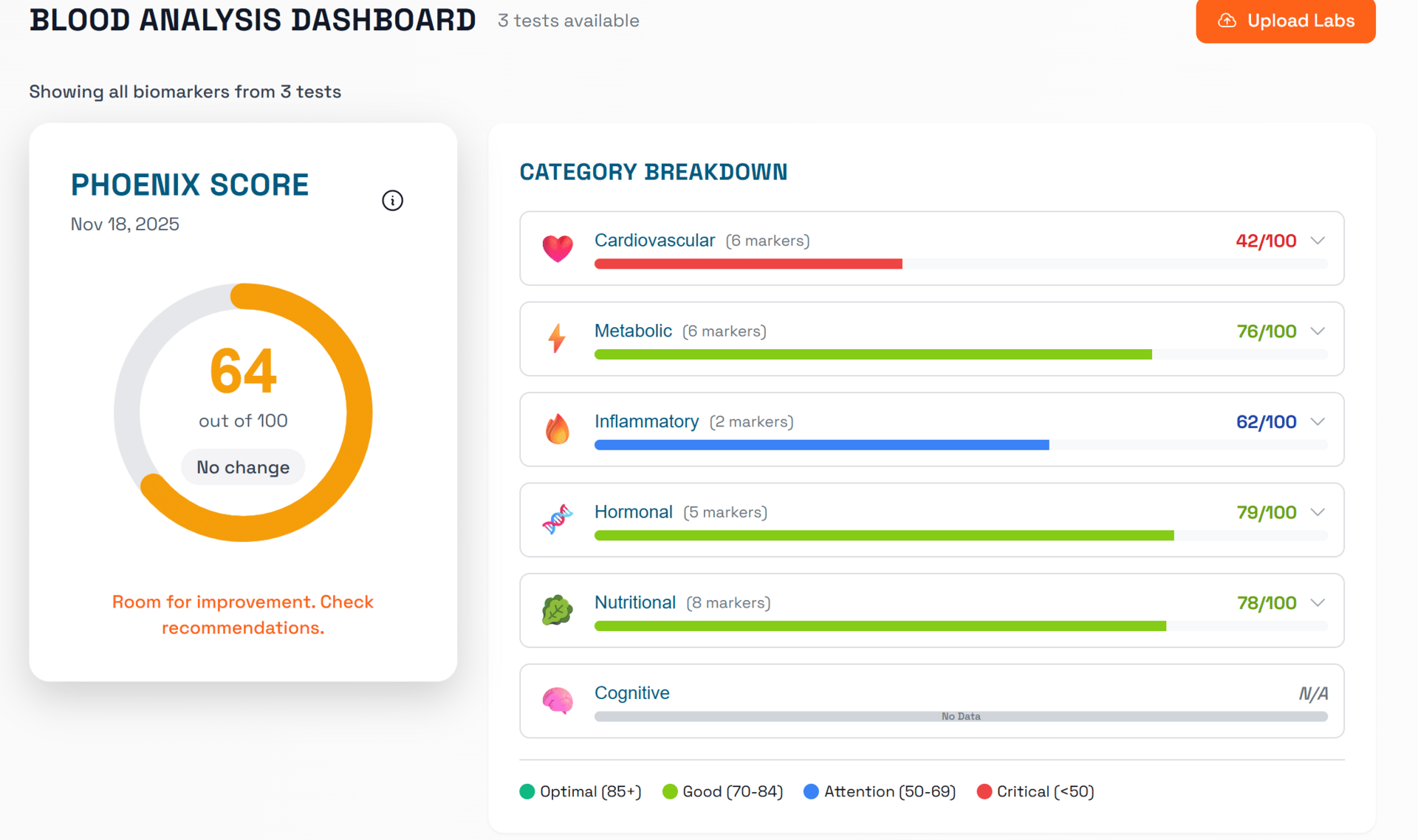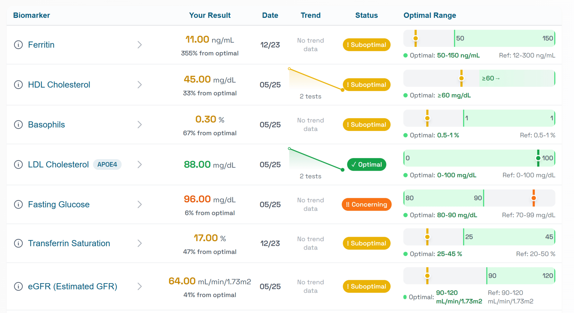 Plus, most members already have 3-5 old blood tests sitting in a drawer. Upload them all. Get insights immediately.