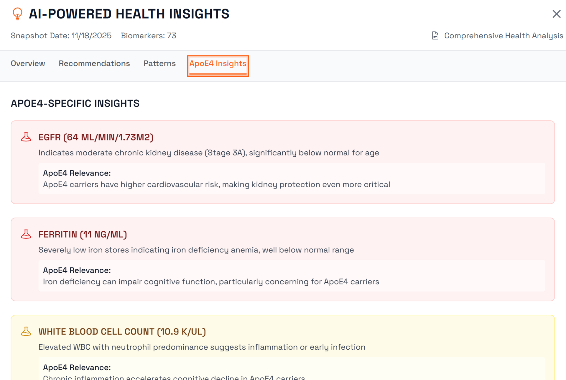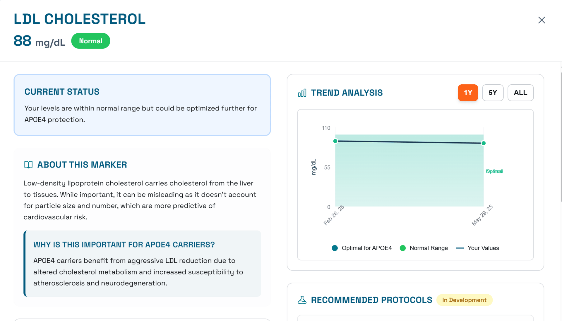 Right now, the module shows you YOUR data with APOE4-specific ranges.